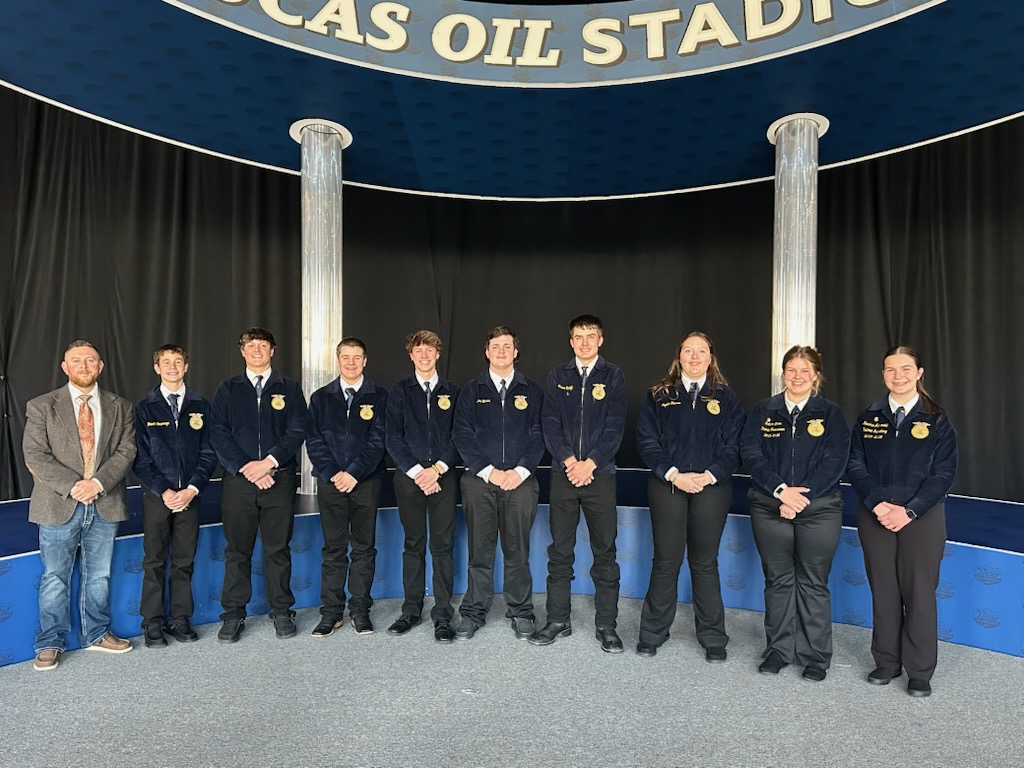 This year, nine of our chapter members had the opportunity to attend the National FFA Convention in Indianapolis, Indiana. At the convention our former member Kailee Mansveld received her American Degree. To earn this degree the member must have been an active member for at least three years, received the State FFA Degree, graduated from high school at least 12 months prior to the national convention, and maintained records for an outstanding supervised agricultural experience (SAE) program. While at the convention our members attended workshops, sessions put on by national officers and keynote speakers, and our students got to tour different farms and facilities in surrounding areas including: