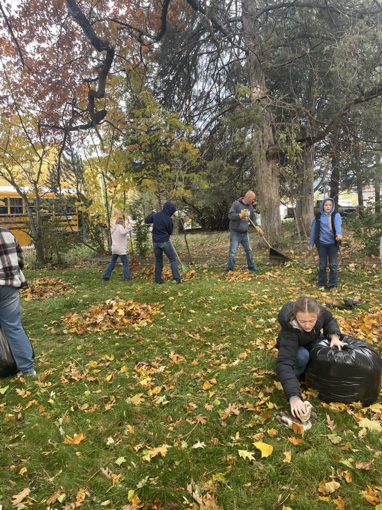 The Junior High Girls Basketball team worked on a community service project raking leaves for community members! |